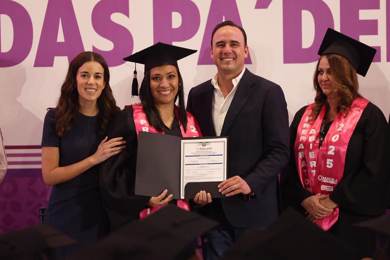 Saltillo, Coahuila de Zaragoza; a 23 de octubre de 2025.- “El día de hoy es un día muy especial porque seguimos fortaleciendo nuestro estado con más de 650 mujeres echadas pa’ delante, mujeres que están más preparadas, que terminaron su preparatoria y que están listas para seguir trabajando por su familia, por ustedes mismas, por su comunidad y por su tierra”. Así lo expresó el gobernador Manolo Jiménez Salinas en el evento en el que, junto a Paola Rodríguez López, presidenta honoraria de Inspira Coahuila, entregó sus certificados a mujeres que cursaron el programa de preparatoria abierta 2024-2025, evento en el que, además, entregó becas a más de 300 mujeres para que continúen con sus estudios universitarios. “Coahuila tiene presente y futuro porque tenemos mujeres fuertes y echadas pa’ delante. Hoy celebramos el gran esfuerzo, constancia y determinación de cientos de mujeres que se gradúan de su prepa y otras que inician la universidad. Todo esto con el gran programa educativo Mujeres Echadas Pa’ Delante. Cuenten conmigo para alcanzar sus sueños. ¡En Coahuila queremos más mujeres empoderadas, realizadas y felices!”, destacó el gobernador. En total, en todo el estado se graduaron 659 mujeres; de ellas, 283 son de Saltillo y a quienes este día se les entregó su certificado. En lo que va de la administración de Manolo Jiménez, con este programa 3 mil 190 mujeres han terminado la preparatoria; más de mil 370 mujeres están inscritas en el ciclo 2025-2026, y 4 mil 500 están cursando la universidad. Manolo Jiménez felicitó a todas las graduadas al expresar que son orgullo y ejemplo para sus familiares y amigos, y mencionó que parte del objetivo de este programa es lograr que existan más mujeres empoderadas, más mujeres realizadas, más mujeres felices, que sean ejemplo para sus familias. Porque, señaló, la mujer es el pilar de la familia, y donde una mujer está bien, hay una familia que está bien. “Y si hay familias sanas y familias fuertes, tenemos una comunidad fuerte. Y si tenemos comunidades fuertes, tenemos municipios y un Estado fuerte y echado para adelante. Por eso, a nombre del gobierno del Estado, a nombre de los municipios, al nombre de las coahuilenses, muchas felicidades a todas las mujeres que hoy se gradúan”, manifestó. Jiménez Salinas comentó que en el yema educativo, su gobierno ha detonado una serie de programas y proyectos como la estrategia Impulso Educativo, dentro de la cual se manejan becas en todos los niveles, se entregaron útiles y uniformes escolares a alumnos de todas las escuelas públicas de nivel básico; se entregaron camiones de transporte escolar en las escuelas rurales, y se está implementando un gran programa para reforzar el aprendizaje del idioma inglés en las escuelas de todos los niveles. Además, destacó que se trabaja en temas igual de importantes como el de salud, desarrollo económico, infraestructura o seguridad. El Gobernador del Estado señaló que en Coahuila hay calidad de vida porque aquí trabajamos en equipo para hacer del nuestro uno de los mejores estados para vivir con nuestras familias. Paola Rodríguez López, presidenta honoraria de Inspira indicó que con el respaldo de Manolo Jiménez, se creó este programa que nació precisamente para abrir puertas, para que ninguna mujer se quede sin la oportunidad de estudiar, crecer y transformar su vida. Señaló que, cuando una mujer estudia, no sólo cambia su historia, cambia la de su familia, la de su comunidad y la de todo nuestro Estado. “Quiero agradecer profundamente a todas y todos los alcaldes de nuestro Estado que han hecho suyo este programa y han creído en la educación como la mejor herramienta para transformar vidas”, mencionó Reconoció que todas las mujeres que se han graduado en este programa y las que están cursando sus estudios universitarios, son el ejemplo vivo de que los sueños no tienen fecha de caducidad, de que la edad no define el límite, sino la determinación, de que sí se puede empezar de nuevo y hacerlo con la cabeza en alto. “Gracias por inspirarnos, gracias por demostrar que el esfuerzo, la fe y la perseverancia son más fuertes que cualquier obstáculo. Y gracias por creer en ustedes, porque eso también inspira a muchas más a hacerlo”, expresó Paola Rodríguez. Javier Díaz González, alcalde de Saltillo, reconoció que las mujeres son la fuerza vital que impulsa nuestra economía, nuestra sociedad y nuestro desarrollo. Destacó que el gran trabajo del gobernador Manolo Jiménez, y el de Paola Rodríguez, ha sido fundamental para impulsar políticas públicas reales, efectivas y con rostro humano, siempre en favor de las mujeres de Coahuila. Selene Esperanza Pepi Rodríguez, alumna egresada de preparatoria abierta, a nombre de sus compañeras agradeció al gobernador Manolo Jiménez y a Paola Rodríguez, por pensar en las mujeres de Coahuila, por abrirles las puertas para que se sigan preparando, y por inspirarlas a soñar más alto. En este evento estuvieron presentes, además, Luz Elena Morales Núñez, diputada presidenta de la Junta de Gobierno del Congreso local; Gabriel Elizondo Pérez, coordinador general de Mejora Coahuila; Luly López Naranjo, presidenta honoraria del DIF Saltillo; Cecilia de la Garza Martínez, directora general de Inspira Coahuila; Mayra Lucila Valdés González, secretaria de las Mujeres; Xanin García Posada subsecretaria de Educación Media; Carlos Alberto Melo Diez de Bonilla, rector de la Universidad CNCI.