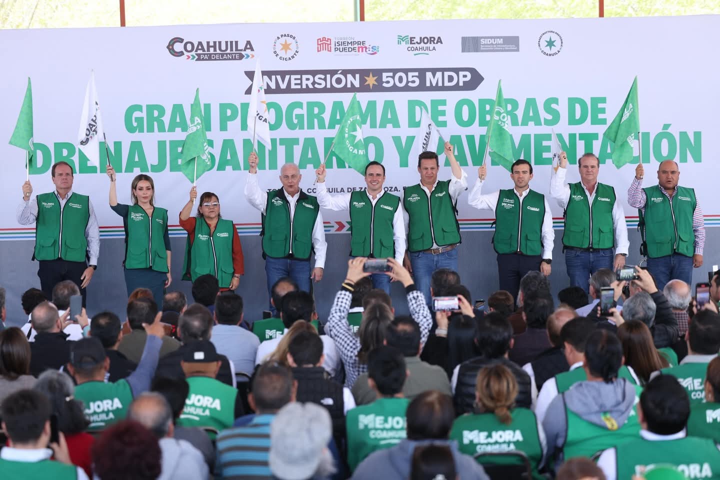 Torreón, Coahuila de Zaragoza; 24 de febrero de 2026.– Como parte del trabajo coordinado entre el Gobierno del Estado y el Ayuntamiento, el gobernador Manolo Jiménez Salinas y el alcalde Román Alberto Cepeda González encabezaron el arranque del Gran Programa de Drenaje y Pavimentación, que representa una inversión de 505 millones de pesos. “Con una inversión de 505 millones de pesos en conjunto con el alcalde Román Alberto Cepeda y nuestro coordinador de Mejora Coahuila en Torreón, Hugo Dávila, arrancamos el gran programa de obras de drenaje sanitario. Una acción muy importante y alineada a las principales peticiones de nuestra gente de las colonias y barrios de la Perla de la Laguna. Trabajando en equipo, seguimos cumpliendo”, destacó el gobernador. Este proyecto contempla la construcción y rehabilitación de siete grandes colectores, 70 drenajes secundarios, pozos de agua y trabajos de recarpeteo en calles y avenidas estratégicas del municipio. El desglose de la inversión establece 335 millones de pesos para drenaje sanitario, 31 millones para obras hidráulicas y 139 millones para pavimentación. Durante el evento, el gobernador destacó que estas acciones responden a demandas históricas de la ciudadanía y forman parte del compromiso de seguir fortaleciendo la infraestructura urbana en La Laguna y en todo Coahuila. Asimismo, informó que en Torreón se ejecutan actualmente cinco grandes proyectos de infraestructura que en conjunto superan los mil 300 millones de pesos, reflejo del trabajo en equipo entre ambas instancias de gobierno. En materia de seguridad, reiteró que más de 10 mil elementos de distintas corporaciones trabajan de manera coordinada en el estado. Tras los hechos registrados el pasado domingo por la detención de un delincuente, se implementó un operativo preventivo de blindaje que permitió mantener condiciones de paz y orden. El alcalde destacó que este programa no tiene precedentes en el municipio y reafirma la coordinación, unidad y corresponsabilidad entre el Estado y el Ayuntamiento para atender las necesidades prioritarias de la población.